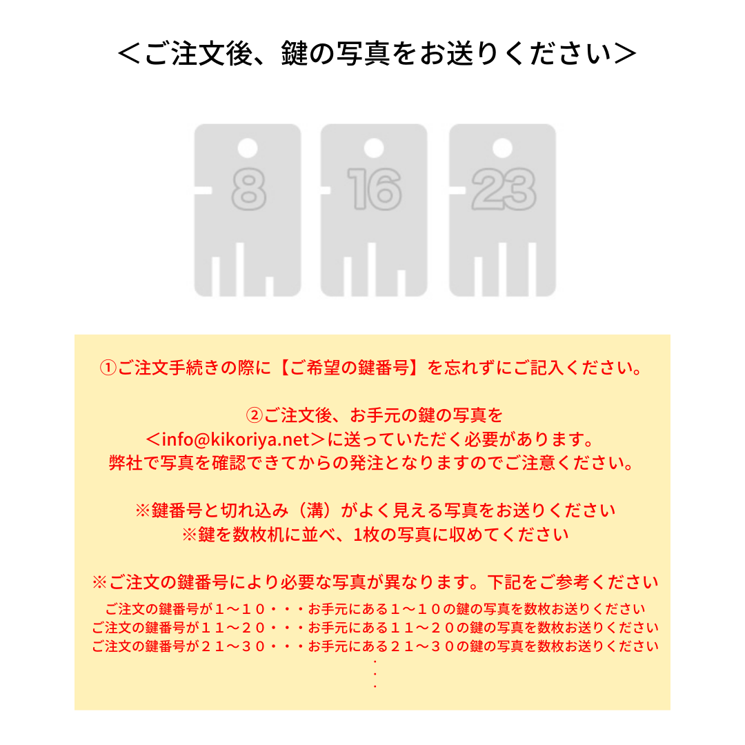 <ご注文後、鍵の写真をお送りください>